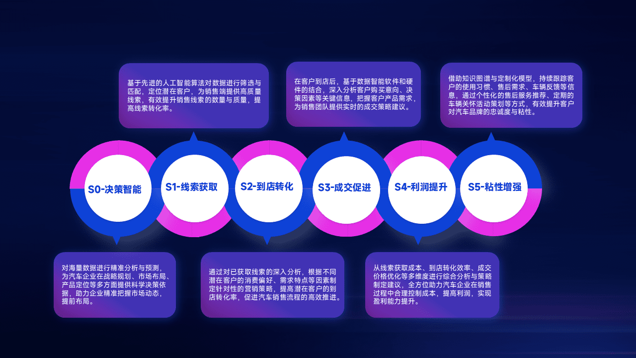 通过拓宽潜在客户来源、、、优化线索分配并提高到店转化率,,,以增强销售效率。。。同时,,,利用线索数据不断优化分析模型,,,,有效提升转化率,,,,扩大营销影响力。。。。